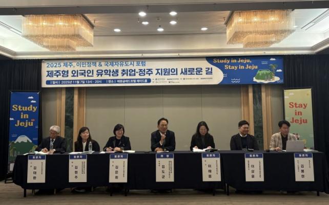 ÀÌ¾î ±èµµ±Õ Á¦ÁÖÇѶó´ëÇб³ ƯÀÓ±³¼ö(Çѱ¹À̹ÎÁ¤Ã¥ÇÐȸ ºÎȸÀå)ÀÇ »çȸ·Î ÁøÇàµÈ Á¾ÇÕÅä·Ð¿¡¼´Â ±èÅÂȯ(Çѱ¹À̹ÎÁ¤Ã¥ÇÐȸ), ±èÇöÁÖ(Á¦ÁÖÆ¯º°ÀÚÄ¡µµÃ» ¿Ü±¹ÀÎÀ̹ÎÁ¤Ã¥ÆÀ), ±èÀºÈñ(Á¦ÁÖ´ëÇб³ ±¹Á¦±³·ùó), ÀÌÇØÀÀ(Á¦ÁÖ¿©¼º°¡Á·¿¬±¸¿ø), ÀÌ»óÀ±(¢ßÁ¦Áֱ۷ιú±³À°ÄÁ¼³ÆÃ), ±èºÀÇö(Á¦ÁÖÀǼҸ®) µî Çаè, Á¤ºÎ, »ê¾÷°è Àü¹®°¡µéÀÌ Âü¿©ÇØ ¹Î¡¤°ü¡¤»ê¡¤ÇÐ Çù·Â ±â¹ÝÀÇ Á¦ÁÖÇü Á¤ÁÖÇü ÀÎÀç ¾ç¼º ¸ðµ¨ ±¸Ãà ¹æ¾ÈÀ» ½Éµµ ÀÖ°Ô ³íÀÇÇß´Ù.