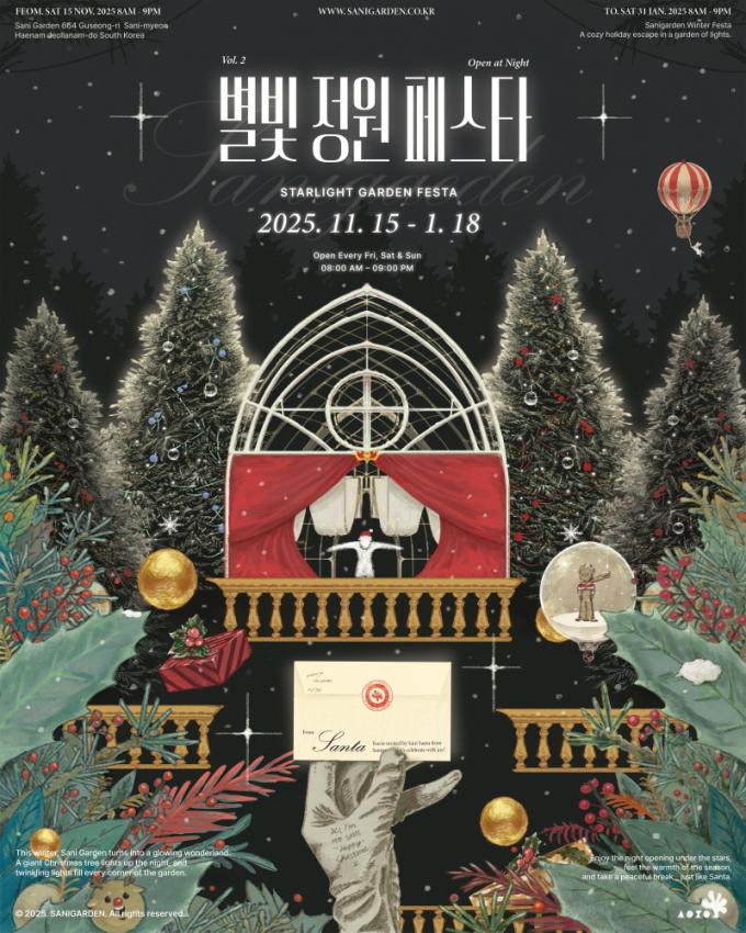 »êÀÌÁ¤¿ø Á߽ɺΠ°¡µç¹ÂÁö¾ö ¾Õ ±¤Àå¿¡´Â ´ëÇü Å©¸®½º¸¶½º Æ®¸®¿Í ÇÔ²² Æ÷ÅäÁ¸ÀÌ ¾î¿ì·¯Áø ¡®Å©¸®½º¸¶½º ºô¸®Áö¡¯°¡ Á¶¼ºµÅ Á¤¿ø ¼Ó °Ü¿ï ¸¶À»ÀÇ ºÐÀ§±â¸¦ ´õÇÑ´Ù. »êÀÌÁ¤¿ø ¹æ¹®ÀÚ¼¾ÅÍ ³» °¶·¯¸®¿¡¼´Â °Ü¿ï Àü½Ã¿Í ÇÔ²² °Ü¿ï ºÐÀ§±â¸¦ ´õÇØÁÙ ¡®Å©¸®½º¸¶½º ¸¶ÄÏ¡¯µµ ÇÔ²² ¿î¿µµÇ¾î Å©¸®½º¸¶½º ¿À³Ê¸ÕÆ®¿Í ¼ÒǰÀ» ÆÇ¸ÅÇϰí, ½ÃÁð¿¡ ¸ÂÃá Âü¿©Çü üÇè ÇÁ·Î±×·¥µµ ¸¶·ÃµÈ´Ù. °¡µç¹ÂÁö¾ö¿¡¼´Â °Ü¿ï °£½Ä°ú µû¶æÇÑ À½·á¸¦ Áñ±â¸ç ½Ç³»¿¡¼µµ Å©¸®½º¸¶½ºÀÇ µû½ºÇÑ ºÐÀ§±â¸¦ ´À³¥ ¼ö ÀÖ´Ù.