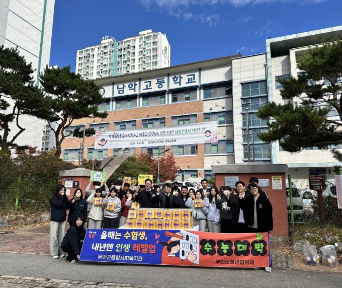 À̳¯ Çà»ç¿¡´Â ¹«¾È±ºÁ¾ÇÕ»çȸº¹Áö°ü Á÷¿øµé°ú ¹«¾È±ºÃ»³âÇùÀÇü ȸ¿ø µî 30¿© ¸íÀÌ ÇÔ²² Âü¿©ÇÏ¿© ¼öÇè»ýµé¿¡°Ô ¡®¿ÃÇØ´Â ¼öÇè»ý, ³»³â¿¡´Â Àλý ·¹º§¾÷¡¯¸Þ¼¼Áö¿Í ÇÔ²² Á¤¼º½º·´°Ô ÁغñÇÑ ÀÀ¿ø¹°Ç°À» Àü´ÞÇϸç, µû¶æÇÑ ¸¶À½À» Àü´ÞÇÏ¿´´Ù.