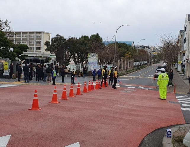 ÀÚÄ¡°æÂû 30¸í°ú ÁÖ¹ÎÀÚÄ¡°æÂû´ë 50¸íÀ» ÅõÀÔÇØ ½ÃÇèÀå ÁÖº¯ ±³ÅëÈ¥ÀâÀ» ÇØ¼ÒÇÏ°í ¼öÇè»ý ¾ÈÀüÀ» È®º¸ÇÑ´Ù´Â ¹æÄ§ÀÌ´Ù.