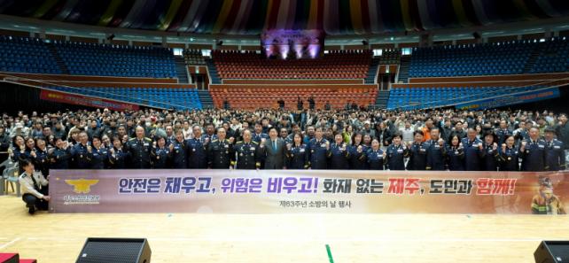 Á¦ÁÖµµ ¼Ò¹æ¾ÈÀüº»ºÎ(º»ºÎÀå ¹ÚÁø¼ö)´Â 11ÀÏ ¿ÀÀü Á¦ÁÖ ÇѶóüÀ°°ü¿¡¼ ¡®Á¦63Áֳ⠼ҹæÀÇ ³¯ ±â³äÇà»ç¡¯¸¦ °³ÃÖÇß´Ù°í ¹àÇû´Ù.