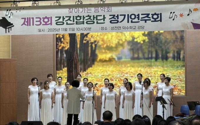 [È£³²µµ¹Î½Å¹® = ÀÓÀ±Áø ±âÀÚ] °­ÁøÇÕâ´Ü(´ÜÀå ±è°æ¼÷)ÀÌ Áö³­ 11ÀÏ ¿ÀÀü °­Áø±º ´ö¼öÇб³ °­´ç¿¡¼­ ¡®Á¦13ȸ °­ÁøÇÕâ´Ü Á¤±â¿¬ÁÖȸ¡¯¸¦ °³ÃÖÇß´Ù. À̹ø °ø¿¬Àº ¡®Ã£¾Æ°¡´Â À½¾Çȸ¡¯¸¦ ÁÖÁ¦·Î ±º¹Î°ú ÇÔ²²ÇÏ´Â ¹®È­ ¼ÒÅëÀÇ ÀåÀ¸·Î ¸¶·ÃµÆ´Ù
