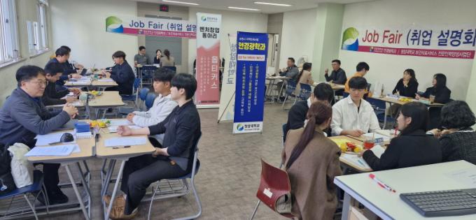 Çà»ç¿¡¼´Â Âü¿© »ê¾÷üº°·Î 2025³âµµ ä¿ë°èȹ°ú ±â¾÷ ºñÀüÀ» ¼Ò°³ÇÑ µÚ, »ê¾÷ü Àλç´ã´çÀÚ¿Í Çлý °£ÀÇ 1:1 »ó´ã ¹× ÇöÀå ¸éÁ¢ÀÌ ÁøÇàµÆ´Ù. ƯÈ÷ »ê¾÷ü¿¡¼´Â Àλç´ã´çÀÚ»Ó ¾Æ´Ï¶ó û¾Ï´ëÇб³ ¾È°æ±¤Çаú Ãâ½Å Á¹¾÷»ý ¼±¹èµéµµ ÇÔ²² Âü¿©ÇØ ÈĹèµé¿¡°Ô Áø·Î Á¶¾ðÀ» ÀüÇϰí, ÇöÀå ä¿ë ºÐÀ§±â¸¦ ÇÑÃþ Ȱ±â ÀÖ°Ô ¸¸µé¾ú´Ù.