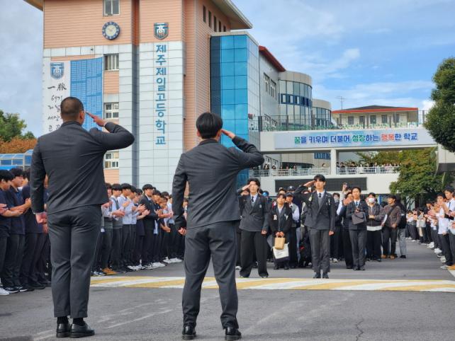 [È£³²µµ¹Î½Å¹® = ÀÓÀ±Áø ±âÀÚ] Á¦ÁÖÁ¦ÀϰíµîÇб³(±³Àå °íµîÇö)´Â Áö³­ 12ÀÏ ¿ÀÀü 10½Ã ±³³» º»°ü ¾Õ¿¡¼­ Á¦70±â ÇлýÀÚġȸ°¡ ÁÖ°üÇϴ¡®¼ö´É ÀÀ¿ø±æ(Á¦ÀÏÀÇ ¹Ù¶÷±æ)¡¯Çà»ç¸¦ ¿­¾ú´Ù.
