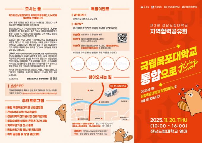 Àü³²µµ¸³´ëÇб³´Â ¿À´Â 2026³â 3¿ù 1ÀÏÀÚ·Î ±¹¸³¸ñÆ÷´ë¿Í ÅëÇÕÀ» ¾ÕµÎ°í ÀÖ´Ù. À̸¦ °è±â·Î Àü³²µµ¸³´ë´Â ¡âû³âÀÌ À¯ÀԵǴ ¸Å·ÂÀûÀÎ ±¹¸³´ë Ä·ÆÛ½º ¡âÁßÀå³âÀÇ Æò»ý±³À° Áß½ÉÁö ¡âÁö¿ª »ê¾÷°ú ¿¬°áµÈ ¸ÂÃãÇü ÀÎÀç ¾ç¼º ¸ÞÄ«·Î µµ¾àÇÒ ¼ö ÀÖµµ·Ï Çõ½ÅÀ» Áö¼ÓÇØ ³ª°¥ °èȹÀÌ´Ù.