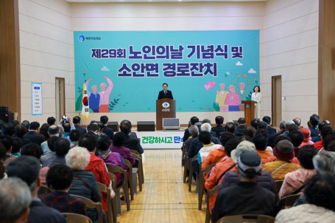 12°³ À¾¸éÀÇ ¾î¸£½Å 1¸¸¿© ¸íÀÌ ÇÔ²² ÇÑ Çà»ç¿¡´Â ±â³ä½Ä°ú ³ë·¡ÀÚ¶û, °æÇ° Ãß÷ µîÀÌ ÁøÇàµÅ Çà»çÀ帶´Ù ¾î¸£½ÅµéÀÇ ¿ôÀ½¼Ò¸®°¡ ÆÛÁ³´Ù. ¾Æ¿ï·¯ ³ëÀÎ °ø°æ°ú º¹Áö ÁõÁø¿¡ ±â¿©ÇÑ ¸ð¹ü ³ëÀÎ, º¹Áö ±â¿©ÀÚ, È¿ÇàÀÚ µî 66¸í¿¡°Ô ǥâÀ» ¼ö¿©Çß´Ù. ¸Å¹ø Çà»ç¿¡ Âü¼®ÇÑ ½Å¿ìö ¿Ïµµ±º¼ö´Â ¡°¿ì¸® ¿Ïµµ°¡, ¿ì¸®³ª¶ó°¡ À̸¸Å ¹ßÀüÇÒ ¼ö ÀÖ¾ú´ø °ÍÀº Æò»ý Çå½ÅÇÑ ¾î¸£½Åµé ´öºÐÀ̾ú´Ù¡±¸é¼ °¨»ç Àλ縦 ÀüÇÏ°í ¡°°Ç°Çϰí ÇູÇÑ ³ëÈĸ¦ À§ÇØ ¾î¸£½Åµé¿¡°Ô ²À ÇÊ¿äÇÑ °ÍÀÌ ¹«¾ùÀÎÁö ´Ã °í¹ÎÇÏ°í º¹Áö¸¦ ´õ ÃÎÃÎÇÏ°Ô Ã¬±â°Ú´Ù¡±¶ó°í ¸»Çß´Ù.