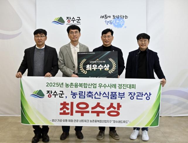 ÃÖÈÆ½Ä Àå¼ö±º¼ö´Â ¡°À̹ø ¼ö»óÀº Áö¿ª ³ó°¡, °¡°ø¾÷ü, ±º¹Î, ÇàÁ¤ÀÌ ÇÔ²² ¸¸µé¾î³½ °ªÁø ¼º°ú´Ù¡±¸ç ¡°¡®Àå¼ö·¹µåǪµå¡¯ÀÇ ºê·£µå °æÀï·ÂÀ» ´õ¿í ³ôÀÌ°í ³ó¾÷¡¤°¡°ø¡¤¸Ô°Å¸®¡¤°ü±¤»ê¾÷ÀÌ ÇÔ²² ¼ºÀåÇÏ´Â ¸ðµ¨·Î ¸¸µé¾î°¡°Ú´Ù¡±°í ¸»Çß´Ù. À̾î ÃÖ ±º¼ö´Â ¡°¾ÕÀ¸·Î Àå¼ö´©¸®ÆÄÅ©¿Í Àå¼ö¸¸³²ÀDZ¤ÀåÀ» ÀÕ´Â À¶º¹ÇÕ Ã¼°è¸¦ ¿Ï¼ºÇØ ³ó°¡¡¤±â¾÷ÀÇ ¼ºÀå°ú Áö¿ª°æÁ¦ Ȱ¼ºÈ¿¡ ´õ¿í Èû¾²°Ú´Ù¡±°í µ¡ºÙ¿´´Ù.
