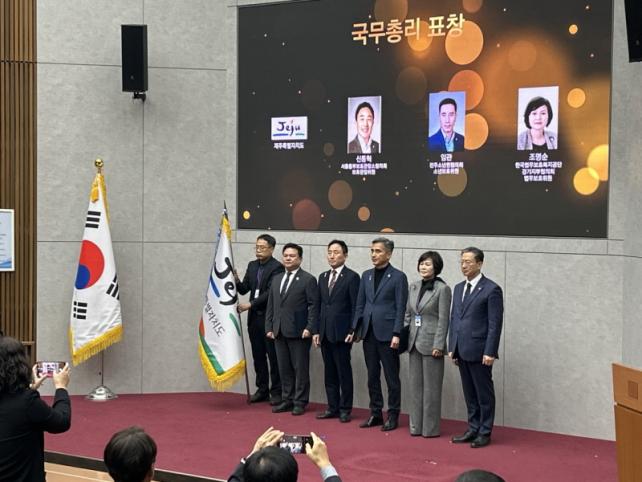 ¹ÚÀç°ü Á¦ÁÖµµ °Ç¼³ÁÖÅñ¹ÀåÀº ¡°Á¦ÁÖµµ´Â µµ¹Î ¸ðµÎ°¡ ¾È½ÉÇÏ°í »ýȰÇÒ ¼ö Àִ ȯ°æÀ» ¸¸µé±â À§ÇØ ¹üÁË¿¹¹æ µðÀÚÀΰú ÁֹΠÂü¿© ±â¹Ý Á¤Ã¥À» Áö¼Ó ÃßÁøÇؿԴ١±¸ç ¡°À̹ø ¼ö»óÀº µµ¹Î°ú ÇàÁ¤ÀÌ ÇÔ²² ¸¸µç ¼º°ú¡±¶ó°í ¸»Çß´Ù. ÀÌ¾î ¡°¡®¾È½ÉÁ¦ÁÖ¡¯ ºê·£µå¸¦ Áß½ÉÀ¸·Î ¹üÁË Ãë¾àÁö¿ª ȯ°æ °³¼±°ú °ø°øµðÀÚÀÎ °íµµÈ¸¦ Áö¼Ó ÃßÁøÇØ Á¦ÁÖ°¡ ´õ¿í ¾ÈÀüÇÑ µµ½Ã·Î ³ª¾Æ°¡µµ·Ï ÃÖ¼±À» ´ÙÇϰڴ١±°í µ¡ºÙ¿´´Ù.