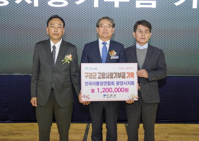 À̹ø »óÈ£±âºÎ´Â Áö³ 9¿ù ±¸·Ê±ºÁöȸ ȸ¿øµéÀÌ ±¤¾ç½Ã¿¡ °íÇâ»ç¶û±âºÎ±Ý 120¸¸¿øÀ» ±âŹÇѵ¥ À̾î, 10¿ù ±¤¾ç½ÃÁöȸ¿¡¼ ±¸·Ê±º¿¡ 120¸¸¿øÀ» ±âŹÇÏ¿© ÀÌ·ç¾îÁ³´Ù.