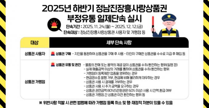 2025³â ÀåÈﱺÀº ¼ÒºñÃËÁø ¹× Áö¿ª»ç¶û»óǰ±Ç Ȱ¼ºÈ­¸¦ À§ÇØ ¡¸ÀåÈﱺ Á¤³²ÁøÀåÈï»ç¶û »óǰ±Ç °ü¸® ¹× ¿î¿µ Á¶·Ê¡¹ °³Á¤À» ÅëÇØ ±¸¸ÅÇѵµ¸¦ ±âÁ¸ 50¸¸¿ø¿¡¼­ 70¸¸¿øÀ¸·Î »óÇâ, 5% »çÈÄ Ä³½Ã¹é À̺¥Æ® ÃßÁø µî ´Ù¾çÇÑ Á¤Ã¥À» ÃßÁøÇϰí ÀÖ´Ù. ƯÈ÷, Áö³­ 9¿ùºÎÅÍ ¿À´Â 12¿ù±îÁö Á¤³²ÁøÀåÈï»ç¶û»óǰ±ÇÀÇ »ó½Ã ÇÒÀÎÀ²À» ±âÁ¸ 10%¿¡¼­ 15%·Î È®´ëÇÏ¿© ÆÇ¸ÅÇϰí ÀÖ´Ù. ¿¹»êÀÌ ¼ÒÁøµÉ ½Ã Ãß°¡ ÇÒÀÎ ÆÇ¸Å´Â Á¶±â¿¡ Á¾·áµÈ´Ù.