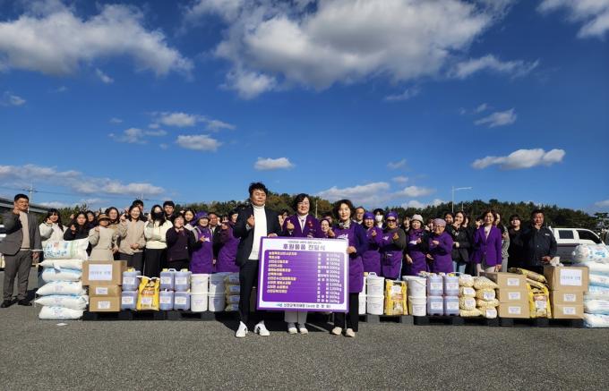 À̳¯ Àü´Þ½Ä¿¡¼´Â Áö¿ª»çȸ¿¡ µû¶æÇÑ ¸¶À½À» ÀüÇϰíÀÚ µ¿ÂüÇÑ 10°³ ÈÄ¿ø´Üü°¡ ¸¶·ÃÇÑ ÃÑ 2,020¸¸ ¿ø »ó´çÀÇ ±èÀåÀç·á°¡ ½Å¾È±º¿©¼º´ÜüÇùÀÇȸ¿Í »çȸº¹Áö½Ã¼³¿¡ Àü´ÞµÇ¾ú´Ù.