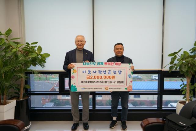 [È£³²µµ¹Î½Å¹® = ÀÓÀ±Áø ±âÀÚ] Á¦ÁÖÆ¯º°ÀÚÄ¡µµ·»ÅÍÄ«Á¶ÇÕ(ÀÌ»çÀå °­µ¿ÈÆ)´Â Áö³­ 18ÀÏ, Á¶ÇÕ »ç¹«½Ç¿¡¼­ ÀÌ¿ô»ç¶û¼º±Ý 200¸¸¿øÀ» Á¦ÁÖÆ¯º°ÀÚÄ¡µµ»çȸº¹ÁöÇùÀÇȸ(ȸÀå °í½ÂÈ­)°¡ ¿î¿µÇÏ´Â Á¦ÁÖµµÇªµå¹ðÅ©¿¡ Àü´ÞÇß´Ù.