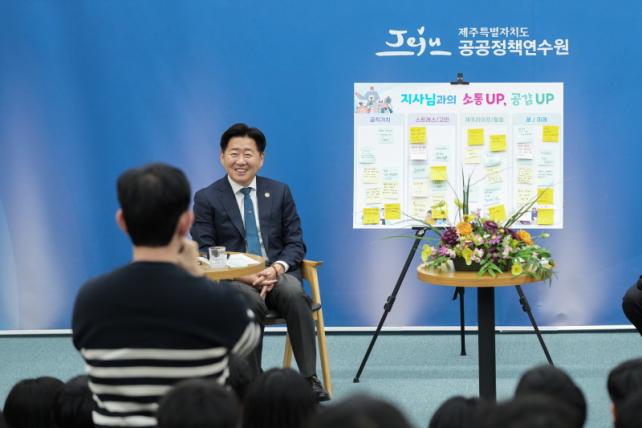 Á¦ÁÖµµ 24ÀÏ ¿ÀÀü °ø°øÁ¤Ã¥¿¬¼ö¿ø ´ë°­´ç¿¡¼­ Á¦3±â ½Å±ÔÀÓ¿ëÀÚ°úÁ¤ ±³À°»ý 100¸í*À» ´ë»óÀ¸·Î ¡®Áö»ç¿Í ÇÔ²²ÇÏ´Â ¼ÒÅë ÇÁ·Î±×·¥¡¯À» ¿î¿µÇß´Ù°í ¹àÇû´Ù. À̹ø ÀÚ¸®´Â »õ·Ó°Ô °øÁ÷¿¡ ÀÔ¹®ÇÑ MZ ½Å±Ô°ø¹«¿øµéÀÇ °í¹Î°ú Áú¹®À» Á÷Á¢ µè°í, µµÁ¤ ¿î¿µ ¹æÇâ°ú ¹Ì·¡ ÇàÁ¤ÀÇ ºñÀüÀ» °øÀ¯Çϱâ À§ÇØ ¸¶·ÃµÆ´Ù.