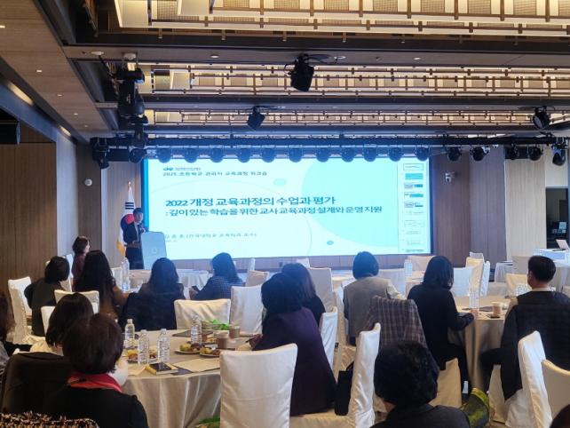 ÇÑÆí Áö³­ 20ÀÏ µµ³» ÃʵîÇб³ ±³Àå 75¸íÀ» ´ë»óÀ¸·Î ±³»ç ±³À°°úÁ¤ ¼³°è¿Í ¿î¿µ Áö¿ø ¹æ¾È°ú 2022 °³Á¤ ±³À°°úÁ¤ Á¤ÂøÀ» À§ÇÑ ±³»ç ¼ö¾÷ Àü¹®¼º Áö¿ø(¼ö¾÷ ÄÁ¼³ÆÃ) ¹æ¾È¿¡ ´ëÇÑ °­ÀÇ·Î ÁøÇàÇß´Ù.
