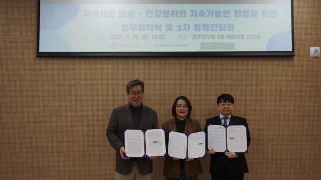 [È£³²µµ¹Î½Å¹® = ÀÓÀ±Áø ±âÀÚ] Á¦ÁÖ±¤¿ªÄ¡¸Å¼¾ÅÍ´Â 2025³â 11¿ù 25ÀÏ(È­) Á¦ÁÖ¿¬±¸¿ø Á¦ÁÖ»çȸº¹Áö¿¬±¸¼¾ÅÍ, °Ç±¹´ëÇб³ °Ç°­°í·É»çȸ¿¬±¸¿ø°ú Áö¿ª»çȸ µ¹º½¡¤°Ç°­ºÐ¾ßÀÇ Áö¼Ó °¡´ÉÇÑ Çù¾÷À» À§ÇØ MOU¸¦ ü°áÇß´Ù.