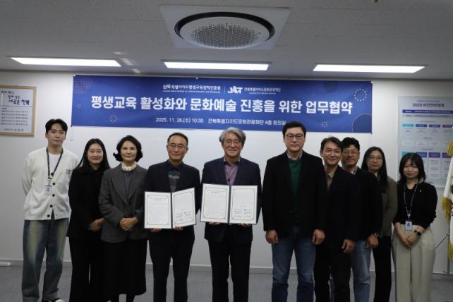 ÀÌÇö¿õ ÀüºÏƯº°ÀÚÄ¡µµÆò»ý±³À°ÀåÇÐÁøÈï¿øÀåÀº ¡°À̹ø ¾÷¹«Çù¾àÀº µµ¹ÎÀÇ »î ¼Ó¿¡¼ Æò»ý±³À°°ú ¹®È¿¹¼úÀÌ ÀÚ¿¬½º·´°Ô ¿¬°áµÇ´Â ±â¹ÝÀ» ¸¶·ÃÇÏ´Â Áß¿äÇÑ ¹ß°ÉÀ½¡±À̶ó¸ç, ¡°µµ Ã⿬±â°ü °£ Çù·ÂÀ» ÅëÇØ ½Ã³ÊÁö È¿°ú¸¦ ±Ø´ëÈÇϰí, µµ¹Î ¸ðµÎ°¡ ´©¸± ¼ö ÀÖ´Â ÇнÀ¡¤¹®È ȯ°æ È®´ë¿¡ ÃÖ¼±À» ´ÙÇϰڴ١±°í ¹àÇû´Ù.