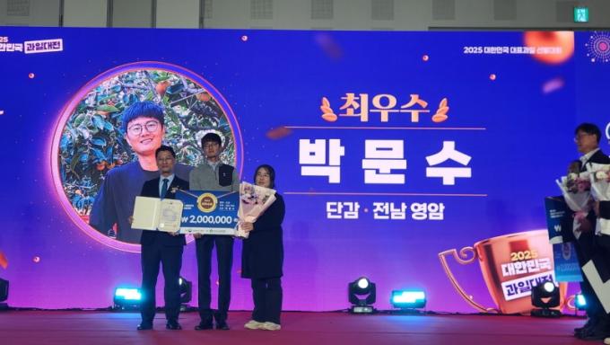 û³â ³ó¾÷ÀÎ ¹Ú¹®¼ö ÀþÀº³óºÎ³ó¿ø ´ëÇ¥ÀÇ ´Ü°¨ ¡®°¨Ç³¡¯ÀÌ ³ó¸²Ãà»ê½ÄǰºÎ ÁÖÃÖ, Çѱ¹°ú¼ö³óÇù¿¬ÇÕȸ¿Í »ê¸²Ã» ÁÖ°üÀ¸·Î 27ÀÏ ´ëÀüÄÁº¥¼Ç¼¾ÅÍ¿¡¼ ¿¸° ¡®2025 ´ëÇѹα¹ ´ëÇ¥°úÀÏ ¼±¹ß´ëȸ¡¯¿¡¼ ÃÖ¿ì¼ö»óÀ» ¹ÞÀº °Í.
