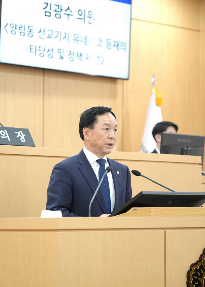 ±¤ÁÖ ³²±¸ÀÇȸ ±è±¤¼ö ÀÇ¿ø, ¡®¾ç¸²µ¿ ¼±±³±âÁö À¯³×½ºÄÚ µîÀçÀÇ Å¸´ç¼º ¹× Á¤Ã¥ Á¦¾ð¡¯