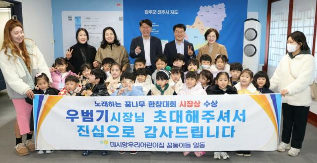 ¿ì¹ü±â ÀüÁÖ½ÃÀå°ú ¾î¸°ÀÌÁý ¿ø¾ÆµéÀÇ À̹ø ¸¸³²Àº Áö³´Þ 23ÀÏ Çѵ¿¹®È¿¹¼ú´ÜÀÌ ÁÖÃÖÇÑ ¡®Á¦4ȸ ³ë·¡ÇÏ´Â ²Þ³ª¹« ÇÕâ°æ¿¬´ëȸ¡¯¿¡¼ ½ÃÀå»óÀ» ¹ÞÀº µ¥½Ã¾Ó¿ì¸®¾î¸°ÀÌÁý ¿ø¾ÆµéÀ» ÃàÇÏÇϱâ À§ÇØ ¸¶·ÃµÆ´Ù.