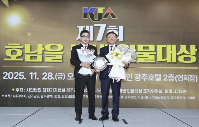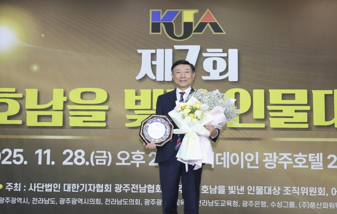 | ¡ã 11¿ù 28ÀÏ ±¤ÁÖ È¦¸®µ¥ÀÌ ÀÎ ±¤ÁÖÈ£ÅÚ 2Ãþ ¿¬È¸Àå¿¡¼ ¿¸° ¡®2025³â Á¦7ȸ È£³²À» ºû³½ Àι°´ë»ó¡¯ ½Ã»ó½Ä¿¡¼, (»çÁø ¿À¸¥ÂÊ) ¹Úâ½Ä ¸ñÆ÷¹®È¿øÀåÀÌ °ø·ÎºÎ¹® ¡®Áö¿ª¹®È°ø·Î¡¯´ë»óÀ» ¼ö»óÇÑ µÚ ±â³äÃÔ¿µÀ» Çϰí ÀÖ´Ù. |