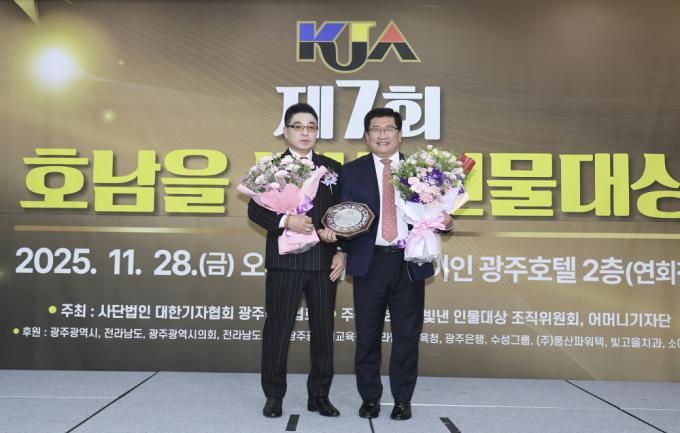 | ¡ã 11¿ù 28ÀÏ ±¤ÁÖ È¦¸®µ¥ÀÌ ÀÎ ±¤ÁÖÈ£ÅÚ 2Ãþ ¿¬È¸Àå¿¡¼ ¿¸° ¡®2025³â Á¦7ȸ È£³²À» ºû³½ Àι°´ë»ó¡¯ ½Ã»ó½Ä¿¡¼, (»çÁø ¿À¸¥ÂÊ) ÃÖÈ»ï Àü ´ã¾ç»õ¸¶À»±Ý°í ÀÌ»çÀåÀÌ °ø·ÎºÎ¹® ¡®Áö¿ª°æÁ¦°ø·Î¡¯´ë»óÀ» ¼ö»óÇÑ µÚ ±â³äÃÔ¿µÀ» Çϰí ÀÖ´Ù. |