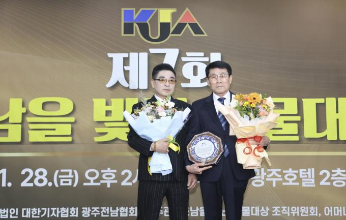 | ¡ã 11¿ù 28ÀÏ ±¤ÁÖ ¼±¸ Ȧ¸®µ¥ÀÌ ÀÎ ±¤ÁÖÈ£ÅÚ 2Ãþ ¿¬È¸Àå¿¡¼ ¿¸° ¡®2025³â Á¦7ȸ È£³²À» ºû³½ Àι°´ë»ó¡¯ ½Ã»ó½Ä¿¡¼, ¾ð·ÐºÎ¹® ¡®¾ð·Ð¹ßÀü°ø·Î¡¯´ë»óÀ» ¼ö»óÇÑ ±è¿ëÈ® º¸´Â´º½º ´ëÇ¥ |