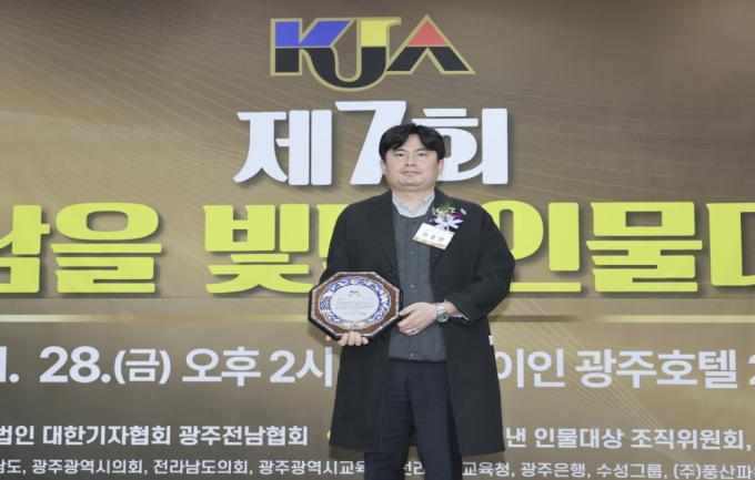 | ¡ã 11¿ù 28ÀÏ ±¤ÁÖ È¦¸®µ¥ÀÌ ÀÎ ±¤ÁÖÈ£ÅÚ 2Ãþ ¿¬È¸Àå¿¡¼ ¿¸° ¡®2025³â Á¦7ȸ È£³²À» ºû³½ Àι°´ë»ó¡¯ ½Ã»ó½Ä¿¡¼, (»çÁø ¿À¸¥ÂÊ) ÀÌÈ«¿¬ ¾Ë¿¥Åà ÁÖ½Äȸ»ç ´ëÇ¥À̻簡 °æÁ¦ºÎ¹® ¡®±â¼úÇõ½Å¡¯´ë»óÀ» ¼ö»óÇÑ µÚ ±â³äÃÔ¿µÀ» Çϰí ÀÖ´Ù. |