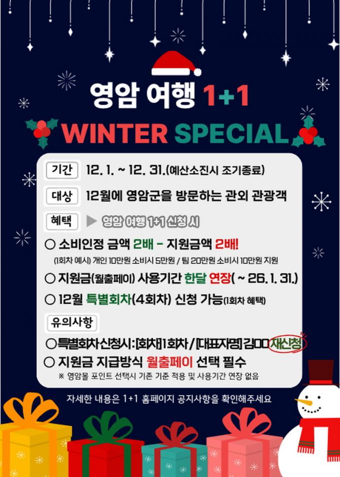 À̹ø ¼³»ê°¡»ê(àäߣʥߩ) À̺¥Æ®´Â, ´«ÀÌ ¿À¸é ´õ ¾Æ¸§´Ù¿î ¿ùÃâ»êÀÇ ¡®¼³°æ(àäߣ)¡¯À» Æ÷ÇÔÇØ ¿µ¾ÏÀÇ °Ü¿ïÀ» Áñ±â·¯ ¿Â °ü±¤°´¿¡°Ô ÇýÅÃÀ» ¡®°¡»ê(ʥߩ)¡¯ÇØ Áشٴ Àǹ̸¦ ´ã°í ÀÖ´Ù. ¿µ¾Ï¿©Çà 1+1Àº ¿µ¾Ï ¿©Çà °ü±¤°´ÀÌ ÀÏÁ¤ ±Ý¾× ÀÌ»ó ¼ÒºñÇϸé, ¹æ¹® ȸÂ÷º°·Î ¸ð¹ÙÀÏ Áö¿ªÈÆó ¿ùÃâÆäÀÌ ¶Ç´Â ¿Â¶óÀÎ ¿µ¾Ï¸ô Æ÷ÀÎÆ®¸¦ Áö±ÞÇÏ´Â ¸ÂÃãÇü Áö¿øÁ¦µµ.