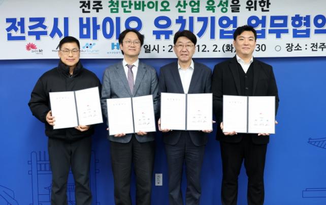 ÀüÁֽô 2ÀÏ ÀüÁÖ½Ãû 3Ãþ ¼ÒȸÀǽǿ¡¼ ÆÄ¸¶·Îº¸Æ½½º¿Í ´º¾ÆÀÎ, ÇÏÀÌÆÛÆ½½º µî ÷´Ü¹ÙÀÌ¿À ºÐ¾ß ±â¼ú·ÂÀ» º¸À¯ÇÑ 3°³ ±â¾÷°ú °øµ¿ ¼ºÀåÀ» À§ÇÑ ¾÷¹«Çù¾àÀ» ü°áÇß´Ù. À̳¯ Çù¾à½Ä¿¡´Â ¿ì¹ü±â ÀüÁÖ½ÃÀå°ú ¼¼ ±â¾÷ÀÇ ´ëÇ¥ µî °ü°èÀÚ 8¸íÀÌ Âü¼®ÇßÀ¸¸ç, À̵éÀº ±â¾÷ ¾Ö·Î ÇØ¼Ò¿Í »ê¾÷ »ýŰè È®ÀåÀ» À§ÇÑ »ó»ý Çù·Â¿¡ ³ª¼±â·Î ¶æÀ» ¸ð¾Ò´Ù.