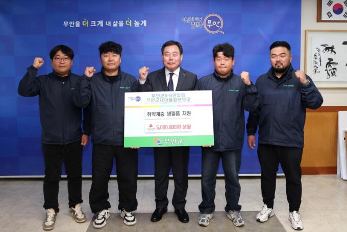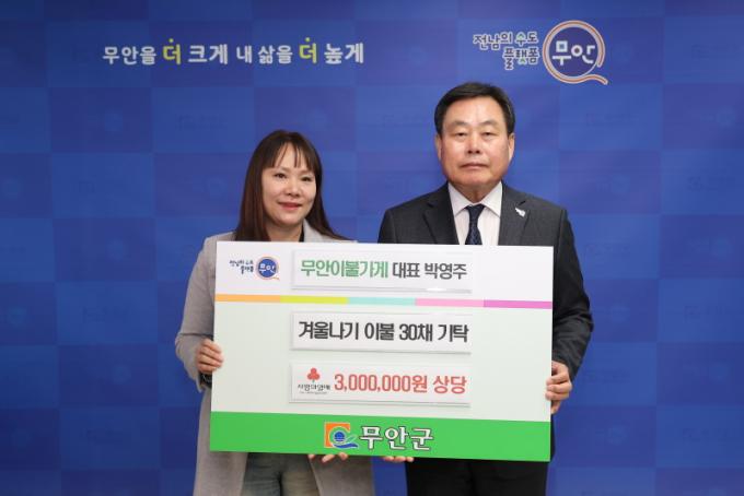 Áö³ 2ÀÏ ¹«¾È±ºÃ»¿¡¼ ¿¸° ±âŹ½Ä¿¡´Â ¡ã¹«¾ÈÀ̺Ò(´ëÇ¥ ¹Ú¿µÁÖ) ÀÌºÒ 30ä ¡ã¹«¾È±º 4-H¿¬ÇÕȸ¡¤¹«¾È±º»õ¸¶À»Ã»³â¿¬´ë(ȸÀå ¼ÛÈ¿Âù) ½Ò 1,000kg ¹× ±èÄ¡ 50¹Ú½º, ¿©¼º¿ëǰ µîÀÌ Àü´ÞµÇ¸ç, Áö¿ª»çȸ¿¡ ÈÆÈÆÇÑ ¿Â±â ³ª´®ÀÇ Á¤À» ´õÇß´Ù.