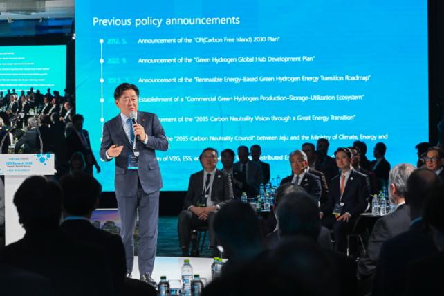 ƯÈ÷ Á¦ÁÖµµ´Â 3ÀÏ ÄÚ¸®¾Æ ¸¶ÄÏ ¼¼¼Ç(Korea Market Session)ÀÇ ÁöÀÚü ´ëÇ¥ ¹ßÇ¥ÀÚ·Î ÃÊûµÅ, Àç»ý¿¡³ÊÁö ±â¹Ý Àüȯ¡¤±×¸°¼ö¼Ò »ýŰè Á¶¼º¡¤ºÐ»ê¿¡³ÊÁö ¸ðµ¨ µî ¡®Á¦ÁÖÇü ¿¡³ÊÁö ´ëÀüȯ¡¯ÀÇ ±¸Ã¼Àû Àü·«À» ¼Ò°³Çß´Ù.