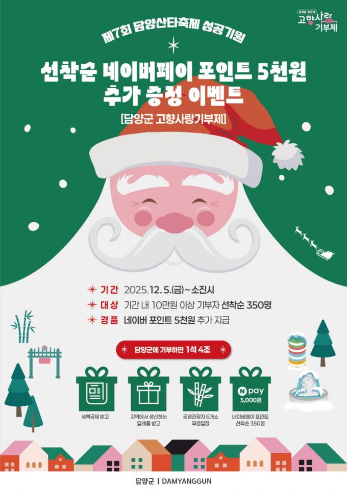À̹ø À̺¥Æ®´Â 10¸¸ ¿ø ÀÌ»ó °íÇâ»ç¶û±âºÎ±ÝÀ» ³½ »ç¶÷ Áß ¼±Âø¼ø 350¸í¿¡°Ô ³×À̹öÆäÀÌ Æ÷ÀÎÆ® 5õ ¿ø±ÇÀ» Ãß°¡ ÁõÁ¤ÇÏ´Â Çà»ç·Î, ´ç÷ÀÚ´Â À̺¥Æ® Á¾·á ÈÄ °³º° ¾È³»ÇÒ ¿¹Á¤ÀÌ´Ù.