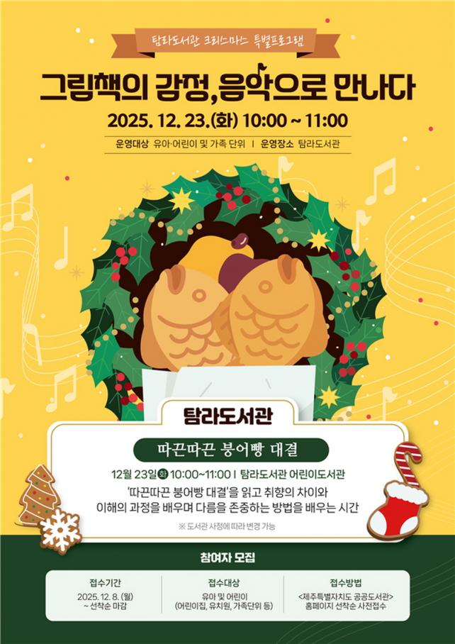 ÇÁ·Î±×·¥ Âü¿©¸¦ ¿øÇÏ´Â ½Ã¹ÎÀº 12¿ù 8ÀϺÎÅÍ Á¦ÁÖÆ¯º°ÀÚÄ¡µµ °ø°øµµ¼°ü ´©¸®Áý(https://www.jeju.go.kr/lib)¢¡Çà»ç/ÇÁ·Î±×·¥¢¡µµ¼°ü ÇÁ·Î±×·¥ ½ÅûÀ» ÅëÇØ Á¢¼öÇÒ ¼ö ÀÖÀ¸¸ç, ±âŸ ÀÚ¼¼ÇÑ »çÇ×Àº ޶󵵼°ü(¢Ï064-728-8373)À¸·Î ¹®ÀÇÇÏ¸é µÈ´Ù.