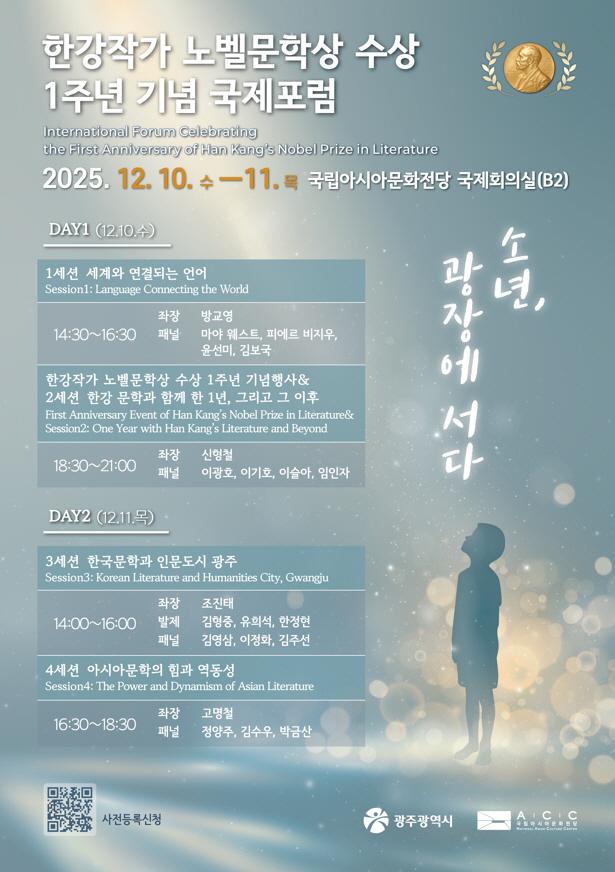 ±¤ÁÖ±¤¿ª½Ã(½ÃÀå °­±âÁ¤)´Â ¿À´Â 10~11ÀÏ ±¹¸³¾Æ½Ã¾Æ¹®È­Àü´ç ±¹Á¦È¸Àǽǿ¡¼­ ¡®ÇѰ­ÀÛ°¡ ³ëº§¹®Çлó ¼ö»ó 1Áֳ⠱¹Á¦Æ÷·³(ºÎÁ¦: ¼Ò³â, ±¤Àå¿¡ ¼­´Ù)¡¯À» °³ÃÖÇÑ´Ù.
