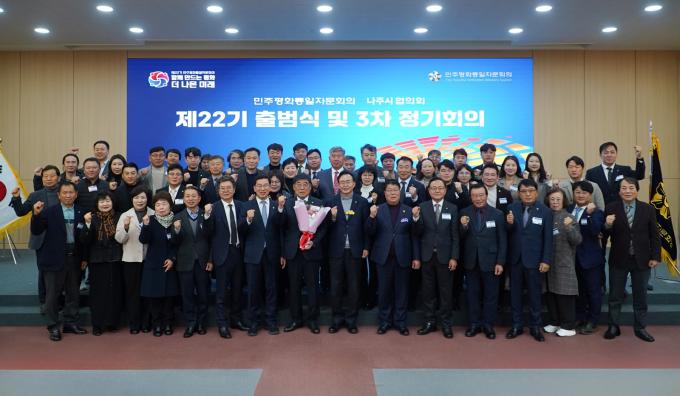 ´ëÅë·É Á÷¼Ó ÀÚ¹®±â±¸ÀÎ ¹ÎÁÖÆòÈÅëÀÏÀÚ¹®È¸ÀÇ ³ªÁÖ½ÃÇùÀÇȸ´Â Áö³ 5ÀÏ ½Ãû»ç ´ëȸÀǽǿ¡¼ Á¦22±â Ãâ¹ü½Ä°ú Á¦3Â÷ Á¤±âȸÀǸ¦ °³ÃÖÇß´Ù°í ¹àÇû´Ù.