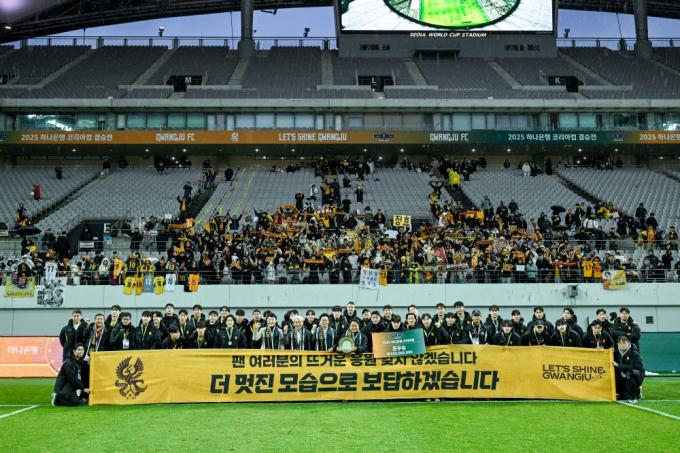 ±¤ÁÖFC´Â ¿ÃÇØ ÀÌÁ¤È¿ °¨µ¶ÀÇ ¸®´õ½Ê ¾Æ·¡ ¼±¼ö´ÜÀº ²ö²öÇÑ Á¶Á÷·Â°ú ÅõÈ¥À¸·Î ÆÒµé¿¡°Ô °¨µ¿À» ¼±»çÇßÀ¸¸ç, ƯÈ÷ ÄÚ¸®¾ÆÄÅ °á½ÂÀü¿¡¼´Â ¸¶Áö¸·±îÁö Æ÷±âÇÏÁö ¾Ê´Â ÅõÁö·Î Àü±¹ Ã౸ÆÒµéÀÇ ¹Ú¼ö¸¦ ¹Þ¾Ò´Ù. ½Ã¹Î°ú ÆÒµéÀÇ ¿Á¤ÀûÀÎ ÀÀ¿øµµ ±¤ÁÖFC ¼ºÀå¿¡ ÇѸò Çß´Ù.