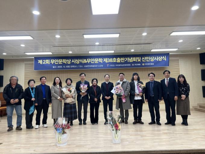 ¹«¾È±º ÇãÀç°æ ¹®È¿¹¼ú°úÀåÀº ¡°¹«¾È¹®ÇлóÀº Áö¿ª ¹®ÇÐÀÇ Àúº¯À» È®´ëÇϰí, ½ÅÁø ÀÛ°¡¿Í Àü±¹ ¹®ÀεéÀÌ ÇÔ²² ¼ºÀåÇÏ´Â ¼ÒÁßÇÑ Ç÷§Æû¡±À̶ó¸ç, ¡°¾ÕÀ¸·Îµµ ¹«¾È¹®ÇлóÀÌ ¹®ÇÐÀ» »ç¶ûÇÏ´Â À̵鿡°Ô Èñ¸Á°ú µµÀüÀÇ ¹«´ë°¡ µÇµµ·Ï Áö¼ÓÀûÀ¸·Î ¹ßÀü½ÃÄÑ ³ª°¡°Ú´Ù¡±°í ¹àÇû´Ù.