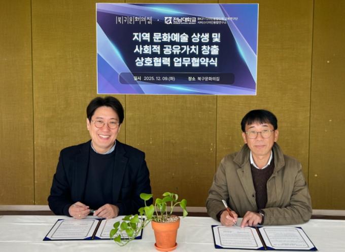 11ÀÏ Àü³²´ë¿¡ µû¸£¸é, Àü³²´ëÇб³ BK21 ÈÞ¸ÕÄɾî Áö´ÉÇü ¹®È­¿¹¼úÄÜÅÙÃ÷ÀÇ µðÀÚÀÎÀ¶ÇÕÀÎÀç¾ç¼º ±³À°¿¬±¸´Ü(¾ÆÆ®&µðÀÚÀÎÅ×Å©³î·ÎÁö Çùµ¿°úÁ¤)°ú ºÏ±¸¹®È­ÀÇÁýÀº Áö³­ 9ÀÏ Áö¿ª ¹®È­¿¹¼ú »ó»ý ¹× »çȸÀû °øÀ¯°¡Ä¡ ½ÇÇöÀ» À§ÇÑ ¾÷¹«Çù¾à(MOU)À» ü°áÇß´Ù.
