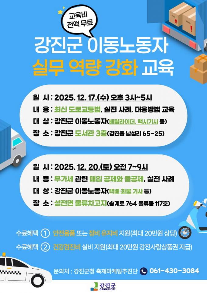 À̵¿³ëµ¿ÀÚ¶õ ¹è´Þ¶óÀÌ´õ, Åýᤴ븮±â»ç, Åù衤ȭ¹° Á¾»çÀÚ µî ÀÏÁ¤ÇÑ ÀÛ¾÷ÀåÀÌ ¾ø´Â »óÅ¿¡¼­ ÁÖ·Î À̵¿Çϸç ÀÏÇÏ´Â ³ëµ¿ÀÚ¸¦ ¸»Çϸç, ±Ù·Î ȯ°æ°ú ¹ýÀû º¸È£¿¡ ÀÖ¾î »ç°¢Áö´ë¿¡ ³õÀÌ´Â °æ¿ì°¡ ¸¹´Ù. ÀÌ¿¡ µû¶ó °­Áø±ºÀº À̹ø ±³À°À» ÅëÇØ ³ëµ¿ÀÚÀÇ ¾ÈÀü, °Ç°­°ü¸®, Á÷¹« ¿ª·® Çâ»ó µî ½ÇÁúÀûÀÎ µµ¿òÀÌ µÉ ¼ö ÀÖµµ·Ï ±³À°À» Á¦°øÇÒ ¿¹Á¤ÀÌ´Ù.