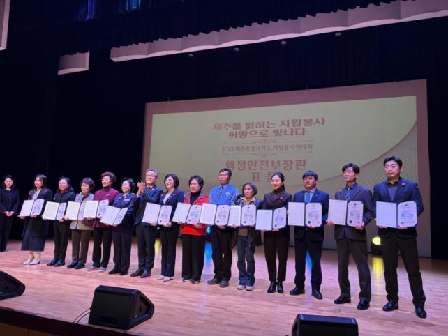 ÇàÁ¤¾ÈÀüºÎÀå°ü ǥâÀº Áö¿ª»çȸ ¹ßÀü°ú ÀÚ¿øºÀ»ç Ȱ¼ºÈ¿¡ ¶Ñ·ÇÇÑ °øÇåÀ» ÇÑ ´Üü ¹× °³Àο¡°Ô ¼ö¿©µÇ´Â »óÀ¸·Î, Á¦ÁÖ°³¹ß°ø»ç´Â µµ¹Î »ýȰ°ú ¹ÐÁ¢ÇÑ »çȸ°øÇå Ȱµ¿À» ²ÙÁØÈ÷ Àü°³ÇØ ¿Â °ø·Î¸¦ ÀÎÁ¤¹Þ¾Æ ¼ö»óÀÚ·Î ¼±Á¤µÆ´Ù.