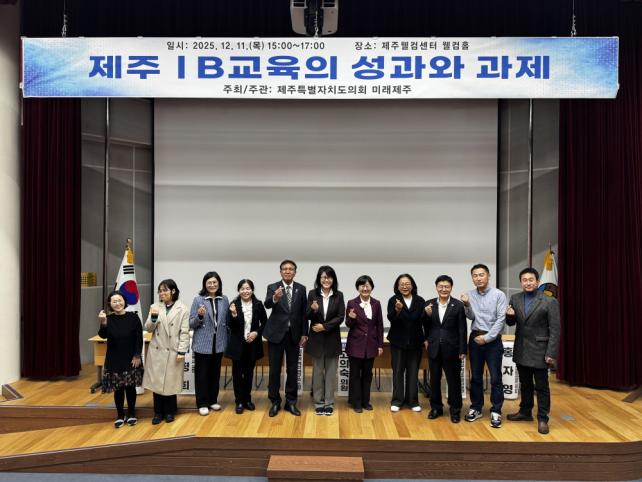 [È£³²µµ¹Î½Å¹® = ÀÓÀ±Áø ±âÀÚ] Á¦ÁÖÆ¯º°ÀÚÄ¡µµÀÇȸ ±³¼·´Üü ¡®¹Ì·¡Á¦ÁÖ¡¯ °­µ¿¿ì(±³À°ÀÇ¿ø) ´ëÇ¥ÀÇ¿øÀº 2025³â 12¿ù 11ÀÏ(¸ñ) Á¦ÁÖÀ£Äļ¾ÅÍ À£ÄÄȦ¿¡¼­ ¡¸Á¦ÁÖ IB ±³À°ÀÇ ¼º°ú¿Í °úÁ¦¡¹¸¦ ÁÖÁ¦·Î Á¤Ã¥Åä·Ðȸ¸¦ °¡Á³´Ù°í ¹àÇû´Ù.