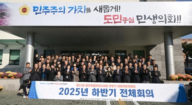 [È£³²µµ¹Î½Å¹® = ÀÓÀ±Áø ±âÀÚ] Á¦ÁÖÆ¯º°ÀÚÄ¡µµÀÇȸ(ÀÇÀå ÀÌ»óºÀ)´Â 12¿ù 12ÀÏ ¿ÀÀü 10½Ã µµÀÇȸ ´ëȸÀǽǿ¡¼­ µµÀÇ¿ø ¹× ÀÇÁ¤ÀÚ¹®À§¿øÈ¸ À§¿ø µî 80¿©¸íÀÌ Âü¼®ÇÑ °¡¿îµ¥ ¡°Á¦12´ë ÈĹݱâ ÀÇÁ¤ÀÚ¹®À§¿øÈ¸ 2025³â ÇϹݱâ Àüü ȸÀÇ¡±¸¦ °³ÃÖÇÏ¿´´Ù.