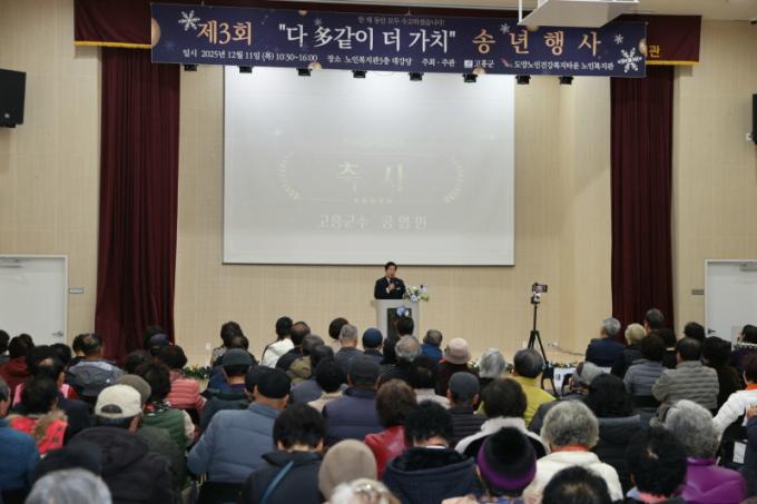 [È£³²µµ¹Î½Å¹® = ÀÓÀ±Áø ±âÀÚ] °íÈﱺ(±º¼ö °ø¿µ¹Î)Àº Áö³­ 11ÀÏ µµ¾ç³ëÀΰǰ­º¹ÁöŸ¿î ³ëÀκ¹Áö°ü ´ë°­´ç¿¡¼­ Áö¿ª ¾î¸£½Å 300¿© ¸íÀÌ Âü¼®ÇÑ °¡¿îµ¥ ¡®2025³â ¿¬¸» ¼Û³âÇà»ç¡¯¸¦ ¼ºÈ²¸®¿¡ °³ÃÖÇß´Ù°í ¹àÇû´Ù.