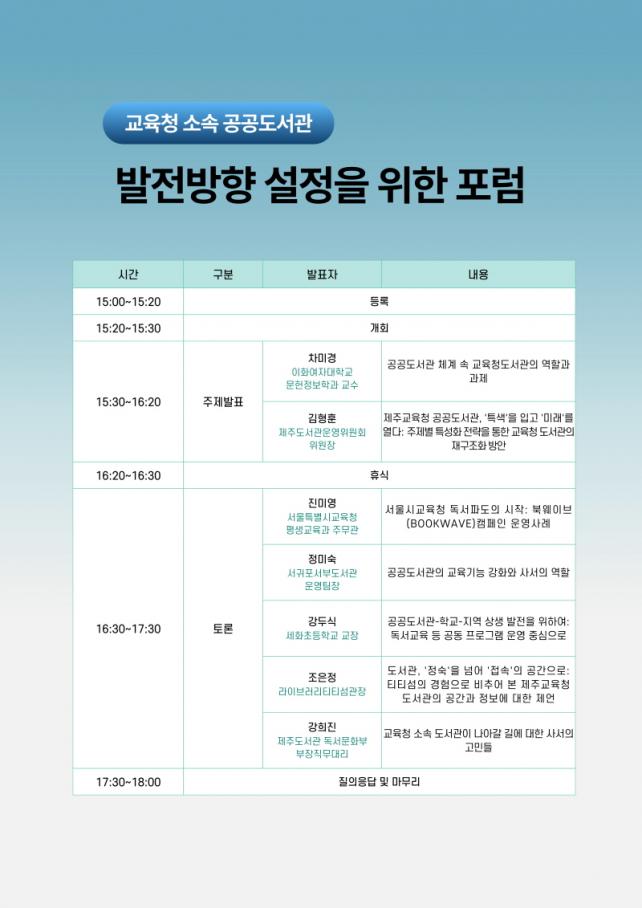 ÁÖÁ¦ ¹ßÇ¥¿¡¼´Â Â÷¹Ì°æ ÀÌÈ¿©ÀÚ´ëÇб³ ±³¼ö°¡ ¡®°ø°øµµ¼°ü ü°è ¼Ó ±³À°Ã»µµ¼°üÀÇ ¿ªÇÒ°ú °úÁ¦¡¯¸¦, ±èÇüÈÆ Á¦ÁÖµµ¼°ü¿î¿µÀ§¿øÈ¸ À§¿øÀåÀÌ ¡®Á¦ÁÖ±³À°Ã» °ø°øµµ¼°ü, Ư»öÀ» ÀÔ°í ¹Ì·¡¸¦ ¿´Ù¡¯¸¦ ÁÖÁ¦·Î °¢°¢ ¹ßÇ¥Çß´Ù.