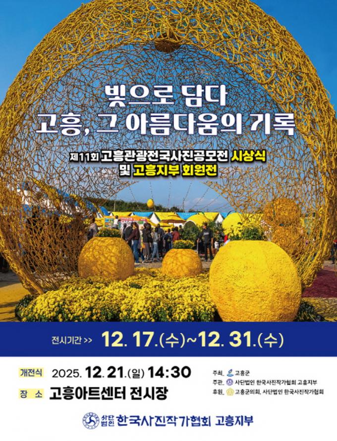 ÇÑÆí, Á¦11ȸ °íÈï°ü±¤ Àü±¹ »çÁø °ø¸ðÀü ½Ã»ó½ÄÀº ¿À´Â 12¿ù 21ÀÏ ¿ÀÈÄ 2½Ã 30ºÐ, °íÈï¾ÆÆ®¼¾ÅÍ 1Ãþ Àü½Ã½Ç¿¡¼­ °³ÃÖµÉ ¿¹Á¤ÀÌ´Ù.