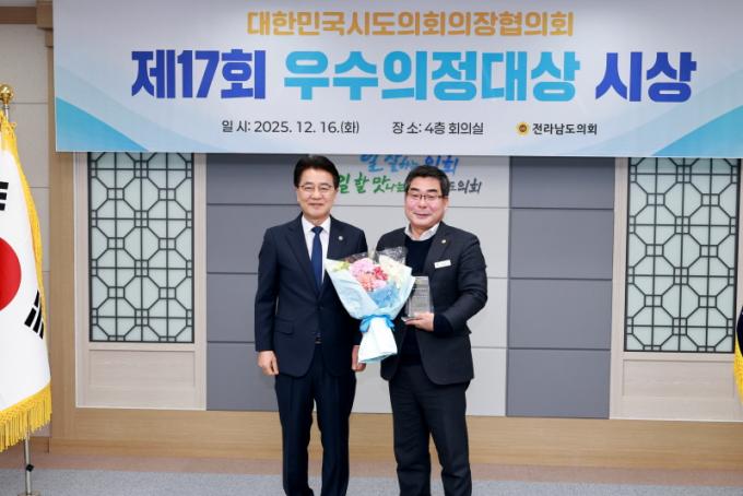 [È£³²µµ¹Î½Å¹® = ÀÓÀ±Áø ±âÀÚ] Àü¶ó³²µµÀÇȸ ¾ÈÀü°Ç¼³¼Ò¹æÀ§¿øÈ¸ ¹ÚÁ¾¿ø ÀÇ¿ø(´õºÒ¾î¹ÎÁִ硤´ã¾ç1)ÀÌ Áö³­ 16ÀÏ, ´ëÇѹα¹½ÃµµÀÇȸÀÇÀåÇùÀÇȸ°¡ ÁÖ°üÇÏ´Â ¡®Á¦17ȸ ¿ì¼öÀÇÁ¤´ë»ó¡¯ ¼ö»óÀÚ·Î ¼±Á¤µÇ´Â ¿µ¿¹¸¦ ¾È¾Ò´Ù.