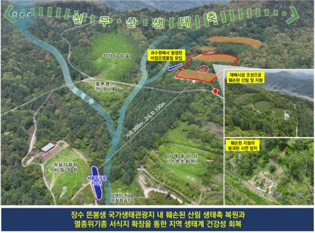Àå¼ö±ºÀº À̹ø¿¡ È®º¸ÇÑ ±¹ºñ 4¾ï5õ¸¸ ¿øÀ» Ȱ¿ëÇØ ¶áºÀ»ù ±¹°¡»ýŰü±¤Áö ³» °ú°Å °³°£»ç¾÷À¸·Î Á¶¼ºµÈ Æó°ú¼ö¿ø ÀÏ¿øÀ» Áß½ÉÀ¸·Î ÈÑ¼ÕµÈ »ê¸²°ú ÁöÇüÀ» º¹¿øÇÏ°í ´ÜÀýµÈ »ê¸² »ýÅÂÃàÀ» ȸº¹ÇÒ °èȹÀÌ´Ù.