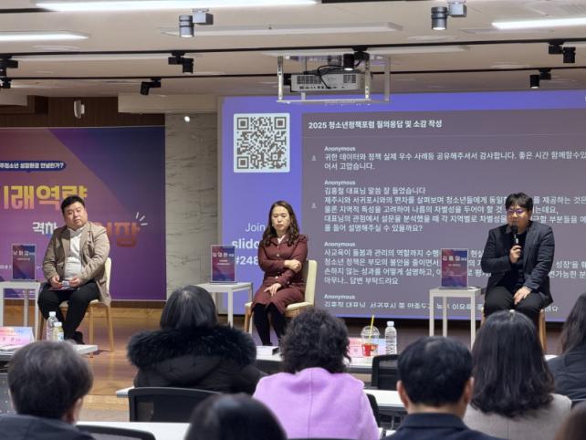 û¼Ò³âÁ¤Ã¥Æ÷·³À» ÁÖ°üÇÑ Á¦ÁÖÆ¯º°ÀÚÄ¡µµÃ»¼Ò³âȰµ¿ÁøÈï¼¾ÅÍ °ü°èÀÚ´Â "À̹ø Æ÷·³Àº ±Þº¯ÇÏ´Â »çȸ¼Ó¿¡¼ ÀÚÄ© ¼Ò¿ÜµÉ ¼ö Àִ û¼Ò³âµéÀÇ ¡®²ÞÀÇ °ÝÂ÷¡¯¸¦ ÁÙÀ̱â À§ÇØ ¿ì¸®°¡ ´çÀå ¹«¾ùÀ» ÇØ¾ß ÇÒÁö È®ÀÎÇÏ´Â ½Ã°£À̾ú´Ù"¸ç, "¿À´Ã ³íÀÇµÈ µû¶æÇÑ Á¦¾ðµé°ú ¾ÆÀ̵éÀÇ ¸ñ¼Ò¸®¸¦ ³õÄ¡Áö ¾Ê°í, Á¦ÁÖ Ã»¼Ò³âµéÀÌ °ÝÂ÷ ¾øÀÌ °í¸£°Ô ¼ºÀåÇÒ ¼ö ÀÖ´Â ´Ü´ÜÇÑ Åä¾çÀ» ¸¸µé¾î °¡°Ú´Ù" °í ÀüÇß´Ù.