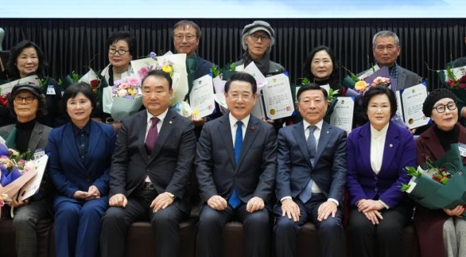 [È£³²µµ¹Î½Å¹® = ÀÓÀ±Áø ±âÀÚ] Àü¶ó³²µµ´Â 17ÀÏ ¹«¾È ³²¾Ç ½ºÄ«ÀÌ¿þµùÄÁº¥¼Ç¿¡¼­ Áö¿ª ¹®È­¿¹¼ú ¹ßÀü¿¡ Å©°Ô ±â¿©ÇÑ °ø·ÎÀÚ 4¸í¿¡°Ô Àü³²µµ ¹®È­»óÀ», ¿¹Çâ Àü³²ÀÇ ¸í¼ºÀ» µå³ôÀÎ ¿¹¼úÀÎ 12¸í¿¡°Ô Àü³²µµ ¸í¿¹¿¹¼úÀÎ ÁöÁ¤¼­¸¦ ¼ö¿©Çß´Ù.