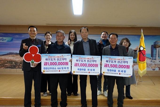 °ü»êÀ¾ ¿Áµ¿¸¶À» À§¼º·¡ ¾¾¿Í ÀÓÇϹΠ¾¾(õ°ü»êÁÖÀ¯¼Ò ´ëÇ¥), ¹æÃ̸¶À» À§¼¼·® ¾¾´Â Áö³ 18ÀÏ °ü³» ¾î·Á¿î ÀÌ¿ôÀ» À§ÇØ »ç¿ëÇØ ´Þ¶ó¸ç ¼º±Ý ÃÑ 350¸¸ ¿øÀ» °ü»êÀ¾¿¡ ±âŹÇß´Ù. À̹ø ¼º±ÝÀº À§¼º·¡ ¾¾ 100¸¸ ¿ø, ÀÓÇϹΠ¾¾ 100¸¸ ¿ø, À§¼¼·® ¾¾ 150¸¸ ¿øÀ¸·Î ¸¶·ÃµÆ´Ù.